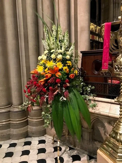 The Flower Guild purchases and arranges the flowers that adorn the altar and nave for Sunday services, special liturgies, weddings and funerals. Experience in flower arranging is welcome but not required as new members are offered training in flower selection and arrangement. Participation requires two to three hours on a Saturday to buy and arrange flowers once every two or three months.